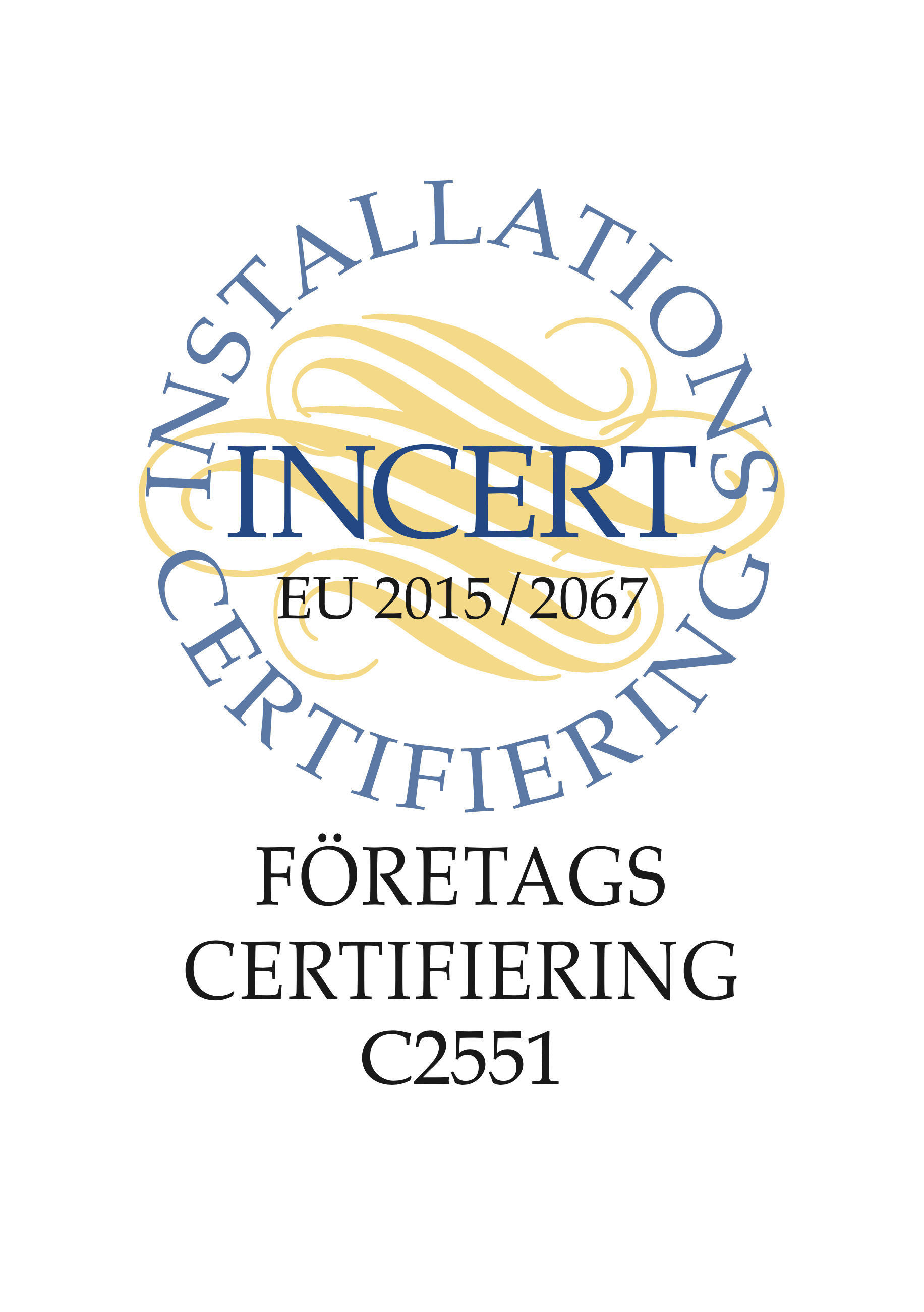 Allt arbete med HFC-gaser i Sverige kräver ett certifikat som utfärdas av Incert. Vi innehar företagscertifikat och samtliga av våra tekniker har personligt certifikat kategori I – den högsta kategorin. Det innebär att vi får arbeta med alla system som innehåller fluorerade växthusgaser, oavsett fyllnadsmängd.